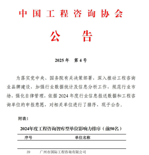 廣州國際咨詢公司榮獲《中國工程咨詢》雜志第二屆優秀論文獎